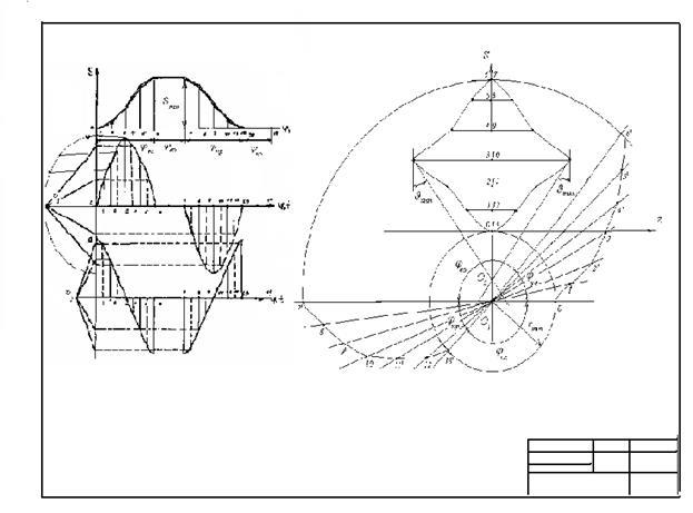2.4. Построение диаграмм перемещения, скорости и ускорения долбяка.