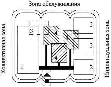 Обязательное условие при этом – независимость функционирования индивидуальной и коллективной зон, т. е. каждая зона должна иметь связь с прихожей. Один из вариантов функционального зонирования квартиры приведен на рис. 2.2.
