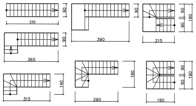 вычерчивают с расчетом расположения секущей плоскости в 2 м от уровня пола каждого этажа. Все элементы оборудования и лестниц, расположенные ниже секущей плоскости, вычерчивают видимыми линиями. Элементы лестниц, расположенные выше секущей плоскости, не вычерчивают, а лестничный марш пересекают диагональной линией.