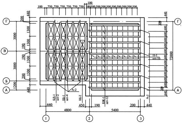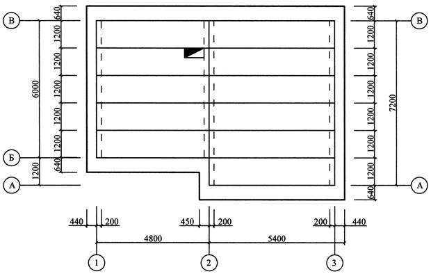 (фундаментов, перекрытий, стропил), так же как и планы этажей, должны иметь слева и внизу три размерные линии, при этом на первой размерной линии проставляют шаг несущих конструкций (балок, стропил) или размеры отдельных элементов (плит перекрытия, фундаментных блоков). Кроме того, на конструктивных планах при помощи выносных линий выполняют маркировку всех элементов, а на плане фундаментов указывают также отметки подошвы фундамента.