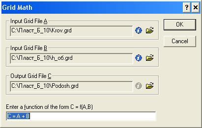 - команда строит новый *.grd файл с помощью математических преобразований одного или двух *.grd файлов.