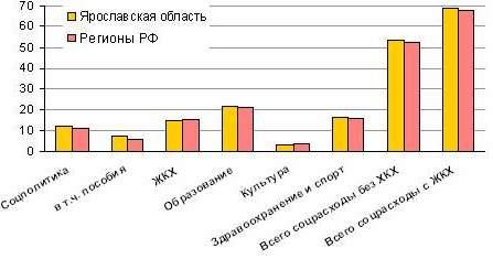 Несмотря на это, Ярославская область оказалась в 2005 г. в числе лидеров по социальной ориентации своего бюджета, доля расходов на социальные цели (включая ЖКХ) выше средней по стране и достигает 69% всех расходов. Доля расходов несколько выше среднероссийской почти по всем социальным статьям, но особенно заметно превышение в выплатах пособий (Приложение 6). Объективные проблемы постарения снижают эффективность социальных расходов, нацеленность на рост человеческого капитала.