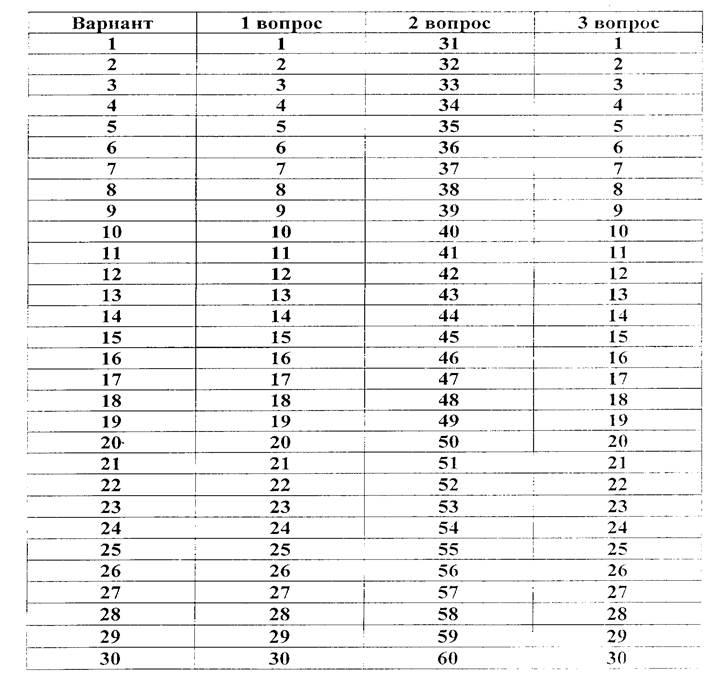 3. Контрольной работы по предмету в 30 вариантах.
