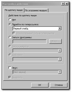 Назначение команд не требует дополнительных объяснений, потому что их функции определяются самим названием. По команде выбранной нами устанавливается ссылка на выбранный нами слайд из окна Гиперссылка на слайд.