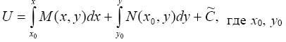 ) удовлетворяют условию такое уравнение называется уравнением в полных дифференциалах. Смысл названия объясняется тем, что при этом существует функция U (x, y) такая, что