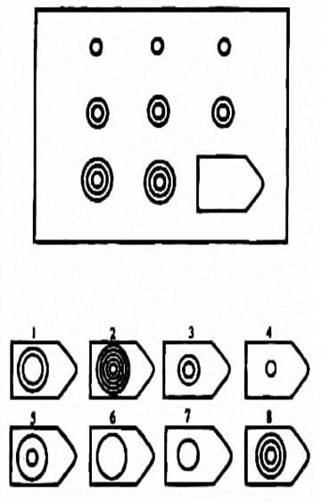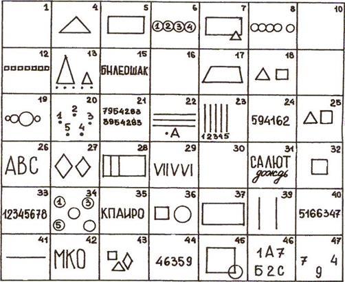 В первом случае для предъявления стимульного материала необходимы электронный тахистоскоп, экран и набор диапозитивов. Для обеспечения четкости восприятия материала необходимо соблюдать следующие правила: высота букв (цифр) должна быть 9-10 мм, толщина штрихов – 1,5 мм, длина ряда знаков – 60 мм, расстояние от экрана до испытуемого 0,75-1,5 м, скорость экспозиции 0,07+