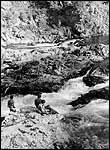 Наверное каждому хотя бы раз в жизни хочется отправиться в путешествие. Влечет и влечет возможность попробовать свои силы в странствиях, где до сих пор ценится умение развести костер, поставить палатку, отыскать верный путь в переплетении ущелий и горных хребтов. Путник, противопоставляющий стихии лишь свои силы, должен много знать, еще больше уметь. И потому, прежде, чем приступить к описанию маршрутов путешествий в долине Белого Июса, я приведу несколько рекомендаций о том, как следует одеться перед выходом на маршрут, как организовать полевой бивак, как не заблудиться в переплетении горных хребтов, дорог и дорожек. Любое путешествие начинается со сборов. Итак, что необходимо взять с собой? Если вы путешественник со стажем, сложностей не возникнет. А если этот поход первый? Тогда, наверное, основным критерием подбора снаряжения, одежды, продуктов питания станут ваши финансовые возможности, ибо ассортимент товаров для туризма, предлагаемый магазинами весьма разнообразен, а разница в ценах ( на одинаковые по функциональным возможностям и качеству предметы) иногда достигает тысячи и более рублей. Исключение составляют товары западных фирм, специализирующихся на выпуске снаряжения для экстремального туризма и альпинизма. Качество их продукции все же сопоставимо с очень высокой ценой. Начнем с походного дома. При выборе палатки следует руководствоваться следующим: " Вес палатки должен быть минимальным; " Желательно, чтобы она была изготовлена из синтетических материалов, не подверженных гниению и не сильно увеличивающих вес при намокании; " Лучше, если палатка имеет тент и легкий металлический или пластиковый каркас; " Палатка должна быстро и легко устанавливаться, хорошо, если поставить ее может один человек; " Палатка должна быть достаточно просторной. Удобно, когда ее длина на 15-20 сантиметров больше роста самого высокого из обитателей и на каждого человека приходится около 50 сантиметров ширины пола. Высота же палатки должна позволять без особых усилий переодеться в ней в дождливую погоду. Поскольку абсолютно непромокаемых палаток не бывает, то большой кусок полиэтилена на крышу будет совсем не лишним. В своих странствиях мы используем самодельную палатку, традиционной формы в виде двускатного домика, сшитую из парашютного капрона. Для защиты от дождя над ней ставим полиэтиленовый тент под которым хранятся и рюкзаки. Для путешествий в зоне леса такая палатка вполне удобна. Самое главное, что она очень мало весит, что важно при больших пеших переходах. Конечно же, если основным транспортом в ваших путешествиях является автомашина, можно найти и более комфортабельный вариант. Желательно запастись туристским ковриком из пенополиуретана. Он не намокает и служит надежной теплоизоляцией даже на мерзлой земле или снегу. В жаркий день такой коврик создаст удобный пляж на любом берегу. Спят в походных условиях чаще всего не под одеялом, а в спальном мешке. Впрочем, летом в Хакасии можно и шерстяным одеялом обойтись. Тепло лучше всего сохраняют спальные мешки с пуховым наполнителем, однако синтетические спальники легче просушить, если они подмокли. Можно сделать самодельный групповой спальник на 2-3 человек, сшив конвертом два одеяла.  Символ туризма - рюкзак. Обратите внимание на то, чтобы ткань рюкзака была прочной, лямки широ