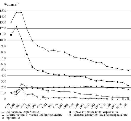 Отраслевое водопользование в Воронежской области в 1975-2009 гг.