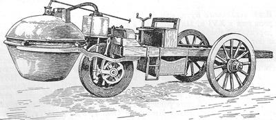 В 1763 г. французский инженер Коньо построил первую паровую повозку. Эта машина работала всего 12-15 минут. В 1769 г. (или в 1770) Коньо построил более совершенную повозку, но, когда ее пустили по улицам Парижа, оказалось, что ею невозможно управлять.