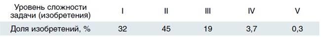 Табл. 1. Доля изобретений различных уровней сложности.