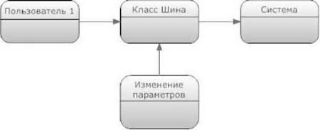 Рис. 5 иллюстрирует взаимодействие, при котором происходит добавление дополнительного параметра Нить в класс Шина. В этом случае источником взаимодействия является пользователь, который вызывает это взаимодействие, в качестве направления взаимодействия выступает Система, в качестве объекта взаимодействия - класс Шина, представляющий собой объект схемы метауровня (см. далее), а в качестве процесса взаимодействия - класс Изменение параметров класса.