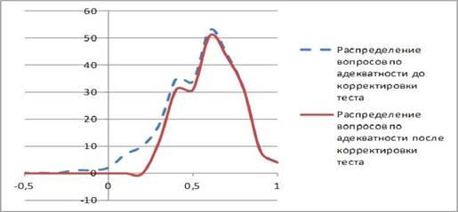 Рис. 5. Распределение вопросов тестового комплекса по адекватности после корректировки