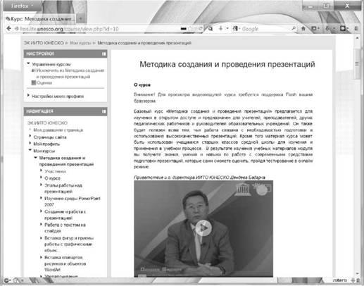 Рис. 1. Дистанционный курс «Методика создания и проведения презентаций» Института ЮНЕСКО по информационным технологиям в образовании
