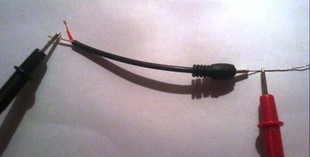 Берем мультиметр и выбираем режим прозвонки. Одним щупом прикасаемся к одному из зачищенных проводников, а другим сначала к внешней контактной части штекера, а затем к вставленной проволочке. Если прибор показал контакт (наличие звукового сигнала), то это свидетельствует о том, что контакт между данным проводом и штекером не нарушен.