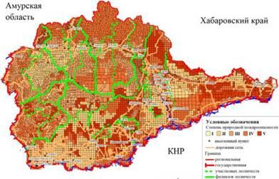 Рис. 1. Степень пирологической пожарной опасности основных растительных формаций на территории Еврейской автономной области