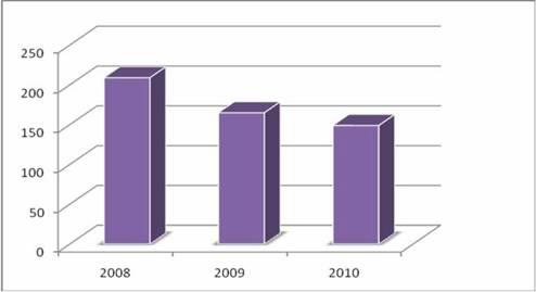 Из таблицы 2 видно, что за исследуемый период сократилось количество фондов: в 2009 году по сравнению с 2008 годом на 44 (21,05%), а в 2010 году по сравнению с 2009 годом - на 16 (9,70%). Это, в первую очередь, связано с аннулированием лицензии на осуществление деятельности некоторых НПФ. В 2009 году приняты беспрецедентные меры по повышению надежности негосударственных пенсионных фондов. В результате, в течение 2008-2009 годов из-за несоответствия новым требованиям, вступившим в силу 1 июля 2009 г., рынок покинули более 40 фондов, не ведущих активной деятельности.