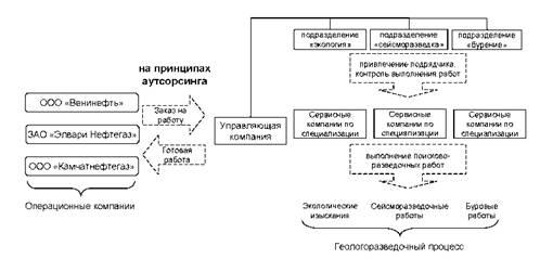 Рис. 2. Схема организации геологоразведочного процесса с применением аутсорсинга
