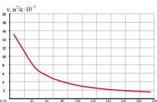 Рис. 2. Зависимость кинематической вязкости воды от температуры