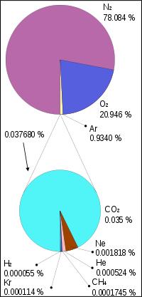 Состав атмосферы достаточно широк. Перечислять в тексте все составляющие не буду, для этого есть хорошая иллюстрация.Состав всех этих газов практически постоянен, за исключением углекислого газа (СО2). Кроме того в атмосфере обязательно содержится вода в виде паров, взвеси капель или кристаллов льда. Количество воды непостоянно и зависит от температуры и, в меньшей степени, от давления воздуха. Кроме того атмосфера Земли (особенно нынешняя) содержит и определенное количество я бы сказал «всякой гадости» . Это SO2, NH3, CO, HCl, NO, кроме того есть там пары ртути Hg. Правда все это находится там в небольших количествах, слава богу .