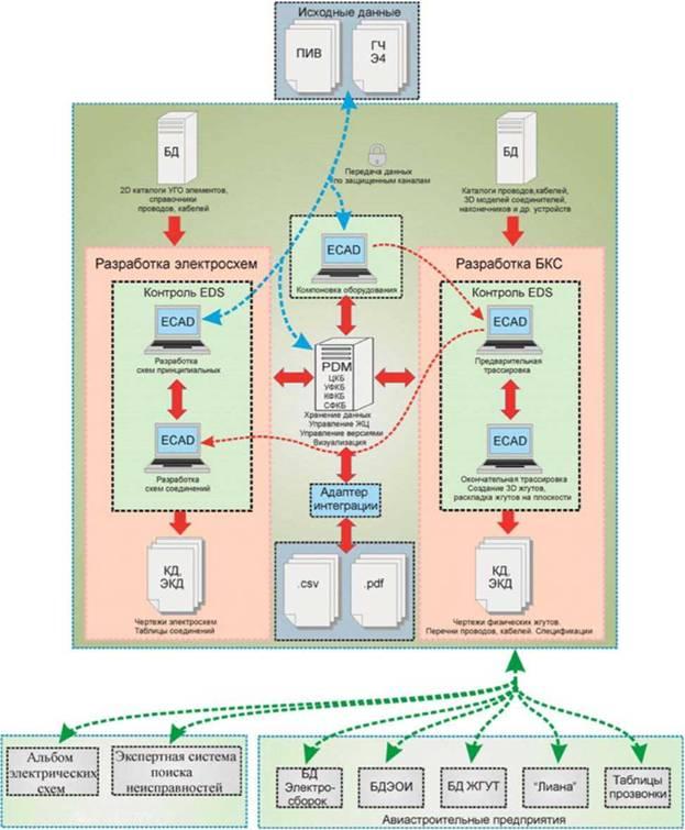 Основными и наиболее актуальными задачами являются связывание этих систем в единое целое [1], организация единого информационного пространства предприятия, единой БД, автоматизированная рассылка заданий на проведение изменений, с указанием того, что надо выполнить при изменении в электрической схеме. Это позволяет избежать избыточности данных, хранимых в каждой из систем, уменьшить временной цикл их передачи между подразделениями не только Ульяновского филиала, но всего ОАО «Туполев», расположенных за сотни километров друг от друга, а также обеспечить непротиворечивость и своевременное обновление данных.