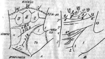 Описанию исследования кожного рельефа ладоней целесообразно предпослать некоторые сведения из ладонной топографии и анатомии (рис. 9).