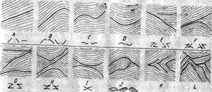 Рис. 11. Схема вариаций в записях формул главных ладонных линий (объяснение в тексте)