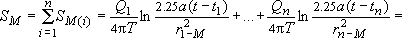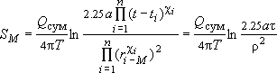 Определим по принципу сложения решений понижение уровня в некоторой точке в момент t, полагая, что расчетное время достаточно для наступления квазистационарного режима в точке :