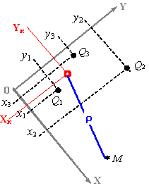 Координаты центра "большого колодца" в произвольной системе декартовых координат {X,Y} вычисляются с учетом координат и долевых коэффициентов дебита каждой скважины:
