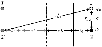 Далее рассмотрим две взаимодействующие равнодебитные скважины, расположенные параллельно урезу реки. Очевидно, что понижения в них будут одинаковыми. Следуя принципу сложения решений, запишем понижение в скв.1 с учетом влияния скв.2 (рис. 4):