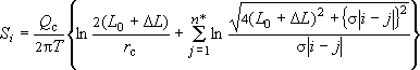 Это так, но они справедливы для "неограниченной" длины ряда, т.е. для бесконечно большого количества взаимодействий скважин между собой. Как следствие - понижения во всех скважинах ряда одинаковые. Фактически же для ряда ограниченной длины это не так: на флангах понижения меньше, чем в средней части ряда; да и в целом понижения реально будут меньше. Такой расчет всегда дает завышение реально необходимого расстояния между скважинами; полученный результат следует использовать лишь как первое приближение для окончательного уточнения по "нормальным" аналитическим зависимостям. Степень погрешности расчета понижения в средней скважине реального ряда (обычно в первую очередь рассчитывают именно это понижение, поскольку оно самое большое и именно его надо сравнивать с допустимой величиной) существенно зависит от длины ряда - вернее, от количества скважин в ряду. Любознательным студентам рекомендуем провести небольшое исследование, сравнив результаты расчета по приближенной и точной методике.