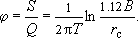 где - радиальная координата точки наблюдения, - "радиус питания" (при ).