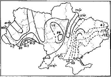 Рис. 4. Карта окончания осенней миграции белого аиста на территории Украины (по: Грищенко, Серебряков, 1992).