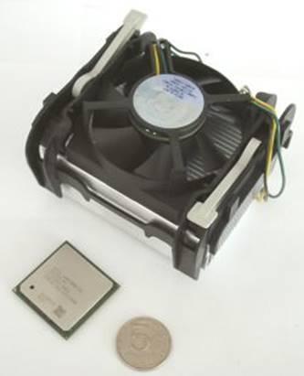 | Хотя процессор Pentium 4 под Socket 478 все равно существенно меньше кулера для него |