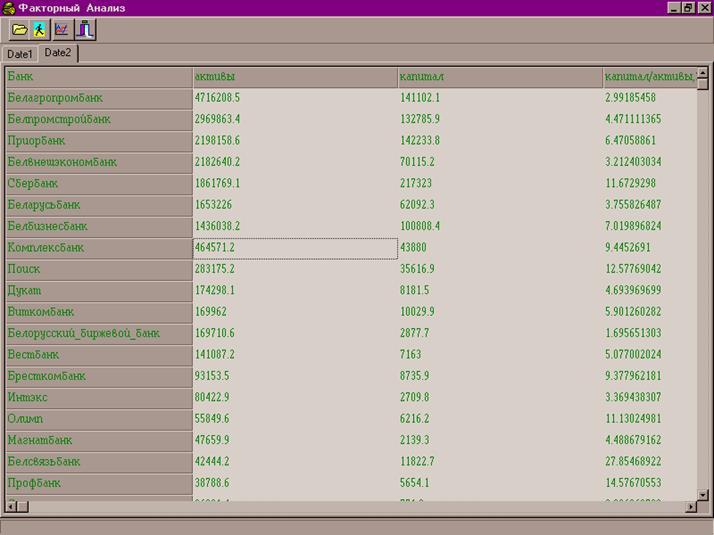 В прилагаемом ниже примере исходными данными является файл по состоянию на 1995 код со следующими показателями, характеризующими банки :