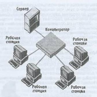 Для построения сети с звездообразной архитектурой в центре сети необходимо разместить концентратор. Его основная функция - обеспечение связи между компьютерами, входящими в сеть. То есть все компьютеры, включая файл-сервер, не связываются непосредственно друг с другом, а присоединяются к концентратору. Такая структура надежнее, поскольку в случае выхода из строя одной из рабочих станций все остальные сохраняют работоспособность. В сетях же с шинной топологией в случае повреждения кабеля хотя бы в одном месте происходит разрыв единственного физического канала, необходимого для движения сигнала. Кроме того, сети с звездообразной топологией поддерживают технологии FastEthernet и GigabitEthernet, что позволяет увеличить пропускную способность сети в десятки и даже сотни раз (разумеется при использовании соответствующих сетевых адаптеров и кабелей).