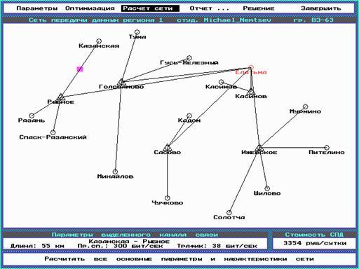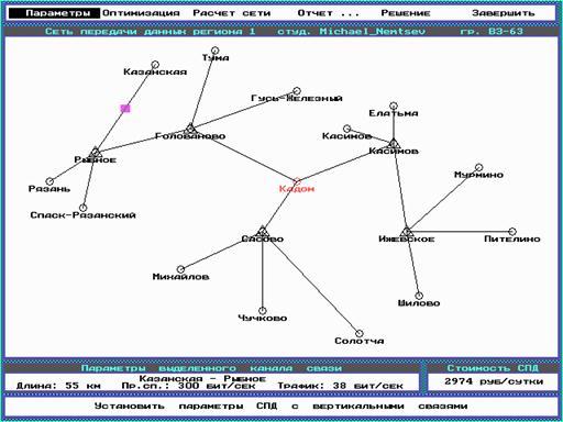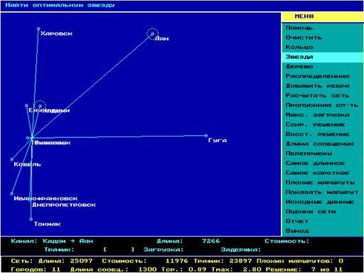 синтеза оптимальной звездообразной сети по критерию минимальной стоимости