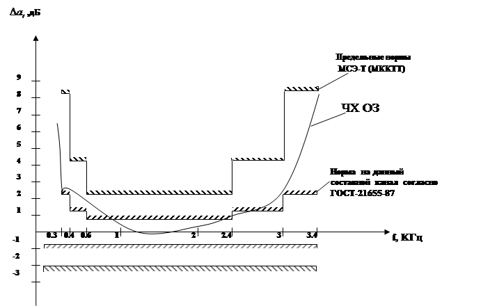 Вывод: полученная ЧХ ОЗ удовлетворяет предельным требованиям МСЭТ(МККТТ). Однако не удовлетворяет требованиям ГОСТа.