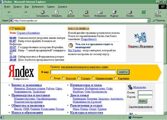 Русскоязычная поисковая система. На сегодняшний день имеет самую большую базу данных, которая имеет кластерную структуру и размещена на нескольких серверах.