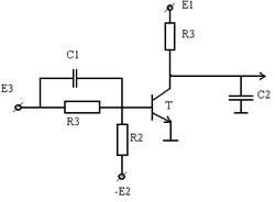 Нумерация узлов схемы осуществляется десятичным числами. Порядок нумерации узлов и описание элементов произволен. Далее нужно проставить направление токов через двухполюсные ветви, ветви резистивные R, емкостные С и ветви источников напряжений Е. Выбор положительных направлений токов произволен для всех ветвей R и С, за исключением ветвей источников напряжений, для которых направление тока выбирается от отрицательного полюса к положительному полюсу (в этом случае в массиве параметров компонентов для ЭДС указывается положительное значение). Для транзисторов проставление направления токов не требуется, достаточно указать тип проводимости транзистора и его модель.