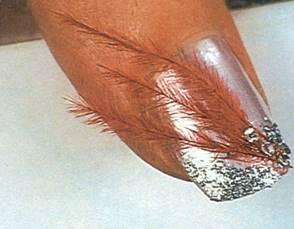При закреплении собственно перо должно остаться за пределами ногтя. Перышки - украшение недолговечное, но их вполне хватит на вечер, где вы хотите поразить окружающих своим экстравагантным видом. Для особой изысканности перо можно посыпать сверху специальным блеском.