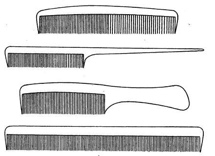 расчески предназначены для расчесывания, тупирования, начесывания и причесывания волос. Длина расчесок этого типа 15-20 см. Чем больше длина расчески, тем выше ее зубья м толще основание (обушок). Форма комбинированных расчесок конусообразная, причем в более узкой части конуса расположены частые зубья.