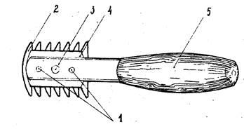Расческа состоит из обушка и зубьев. Концы расчесок могут быть различными и оканчиваться либо ручкой, либо хвостиком. Формы изготовляемых расчесок зависят от их назначения, поэтому расчески можно условно разделить на четыре типа (рис. 1):