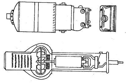 Смазывают и очищают основные узлы через каждые 3-4 месяца. Для этого машинку разбирают в такой последовательности: сначала отворачивают пластмассовый штуцер со вставленной в него пружиной, находящейся в хвостовой части машинки, и сдвигают их вместе с шайбой вдоль оси шнура в сторону от машинки; затем берут машинку за головку в левую руку и сдвигают корпус в сторону питающего шнура, открывая таким образом доступ к электродвигателю.