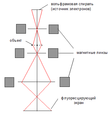 Электронно-микроскопическое изображение создается потоком электронов, невидимых для человеческого глаза, и поэтому его нельзя воспринимать визуально. Чтобы полученное изображение сделать видимым для глаза, пучок электронов подают на специальные экраны, покрытые светящимися составами.