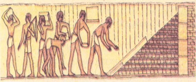 Для возведения небольших объектов использовали строительные леса и подмостки, при крупных строительных работах, как, например, сооружение пирамид, и в более поздние времена при постройке храмов и т. д. пользовались для доставки необходимых материалов специальными наклонными платформами. Эти платформы наращивали по мере роста сооружения. После окончания строительных работ эти платформы разрушались. Одновременно с возведением здания его внутренние помещения заполнялись песком. Окончательные отделочные работы производились сверху вниз. По мере их окончания песок удалялся.