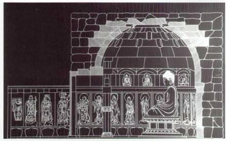 ). Соккурам - единственный в Восточной Азии пещерный храм, где главная фигура расположена в центре зала. Статуя как бы воплощает собой синтез архитектурных и скульптурных форм храма.