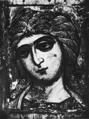 Среди дошедших до нас самых ранних новгородских икон имеются шедевры мирового значения. Таков, например, «Ангел Златые власы», написанный, вероятно, в конце XII в. По всей вероятности – это фрагмент деисусного чина. Глубокая одухотворенность печального лика с огромными глазами делает образ иконы чарующе-прекрасным. Какая высокая, чистая красота в этом незабываемом образе! Еще явственна печать Византии и нечто подлинно эллинское светится в прекрасном овале лица с нежным румянцем под волнистыми волосами, разделанными золотыми нитями. Но печаль в глазах, такая лучистая и глубокая, вся эта милая свежесть, вся эта волнующая красота не есть ли уже отражение русской души. Готовой осознать свой особый удел с его трагическими испытаниями?