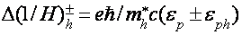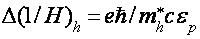 В работах [22-24] предложена модель, согласно которой осцилляции возникают в результате электрон-дырочных переходов между экстремумами подзон Ландау вблизи ферми-уровня. При этом циклотронные массы электронов и дырок должны быть кратны. В модификации данной модели [25] период осцилляций определяется комбинированной площадью где - площади экстремальных сечений электронной и дырочной ферми-поверхностей, а отношение целое число, равное отношению циклотронных масс дырок и электронов.