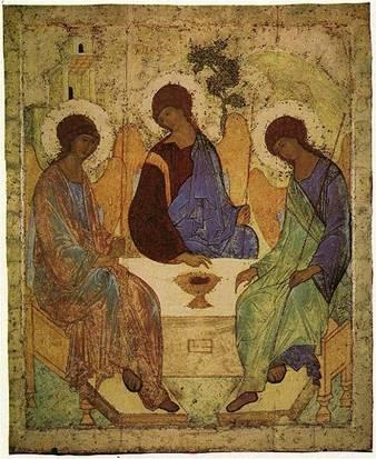 Андрей Рублев один из первых смог через живопись выразить те нравственные идеалы, которые словом и делом утверждал Сергий Радонежский. Поэтому не случайно считалось, что сама икона с изображением святой Троицы была написана художником в похвалу Сергию Радонежскому. Сама икона не только выражала один из важнейших догматов православия - равнозначность и единство трех ипостасей Божества, но и художественно утверждала его в сознании людей. В честь святой Троицы Сергий Радонежский основал монастырь, Ей же был посвящен главный монастырский собор. Учение Сергия о Троице, икона Андрея Рублева отражали реальную жизненную ситуацию: “да воззрением на Святую Троицу побеждается страх ненавистной розни мира сего”.