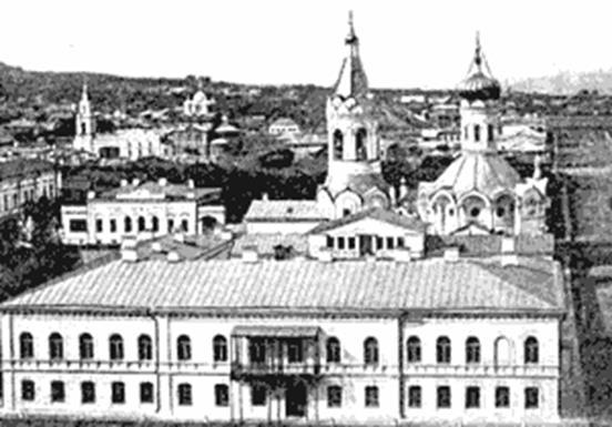 Предполагалось открыть в Симбирске свою семинарию. Духовная консистория первоначально была размещена в ветхом двухэтажном корпусе около ворот Покровского монастыря, а архиерей – в монастырских настоятельных кельях. В 1844году у княгини Хованской для архиерея был куплен каменный двухэтажный дом на Венце. Этот дом был построен дедом княгини, бывшим симбирским губернатором Александром Васильевичем Толстым. Консистория какое-то время помещалась в деревянном флигеле на одной из усадеб, а в 1859 году для неё был построен двухэтажный кирпичный дом.